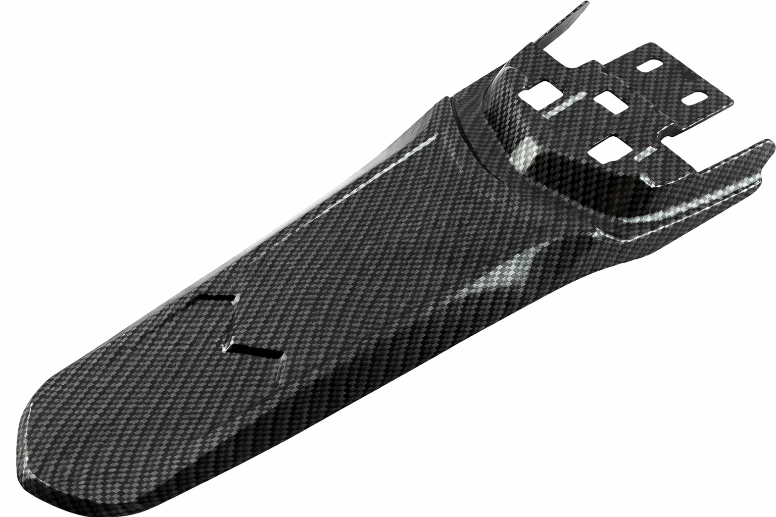 Extended Carbon Fiber Surron Fender- Upgrade your ride with this extended carbon fiber fender, engineered for maximum coverage and style. Crafted from 100% real carbon fiber, it’s ultra-lightweight yet incredibly strong, offering superior resistance to heat, impact, and corrosion. The extended design keeps mud, water, and debris at bay, ensuring a cleaner, smoother ride in all conditions—while adding a sleek, high-performance look to your Surron.